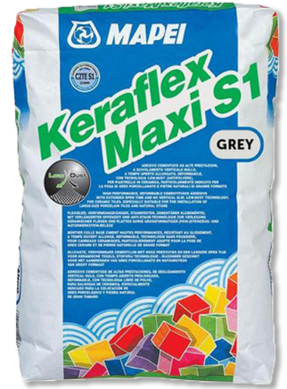 Mapei Keraflex Maxi S1 Grey is a popular high performance adhesive with no vertical slip & extended open time. Perfect for laying large format Porecelain & Natural Stone Bluestone & Travertine in bed thickness 3mm to 15mm.