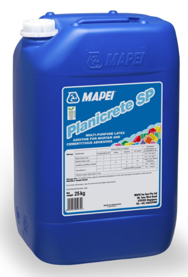 Mapei Planicrete SP 25kg is a screed latex additive for mortar & cementitious adhesive. When added to mortars, screeds and renders it increases mechanical strength and adhesion to the substrate.