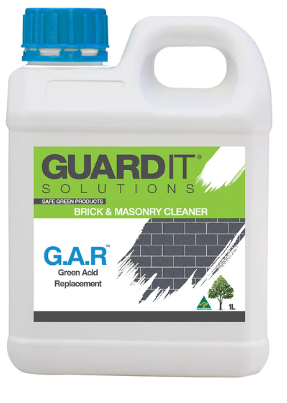 GuardIT Green Acid Replacement (G.A.R), is an environmentally responsible acid alternative. Green Acid is a safe alternative to harsh acids, replacing hydrochloric acid in the removal of cement residue, mortar residue and efflorescense. Suitable for removing cement residue from concrete, sandstone, ceramic, terracotta, bricks, blue stone, painted metal surfaces and other similar surfaces. Not suitable on Zincalume.