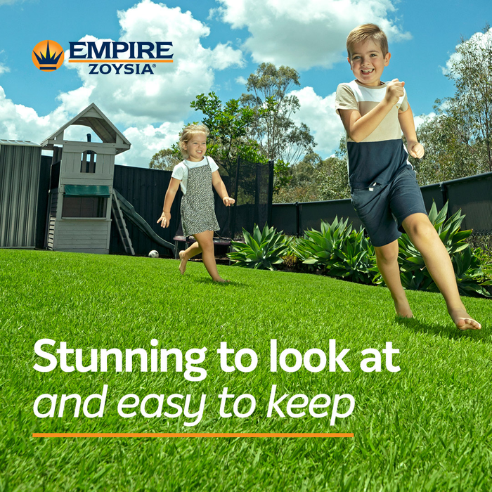 **SUBJECT TO AVAILABILITY PLEASE CALL FOR PRICING** Key Features: Very high drought tolerance Very low maintenance - less mowing fertiliser and water High wear tolerance High salt tolerance Eye-catching dark green colour Fine-medium leaf that is soft to touch and underfoot High salt tolerance Produces low seed head (common irritant to people with allergies) Empire Zoysia has a reputation for being one of the most drought-tolerant water-efficient turf varieties available in Australia. Zoysia turf is a soft easy-to-manage lawn that grows Australia-wide and features a fine leaf with strong wear tolerance making it ideal for homes virtually anywhere. Two of its prominent features include its good strong green colour throughout autumn and winter and its minimal maintenance year-round in terms of mowing, watering and fertilising.